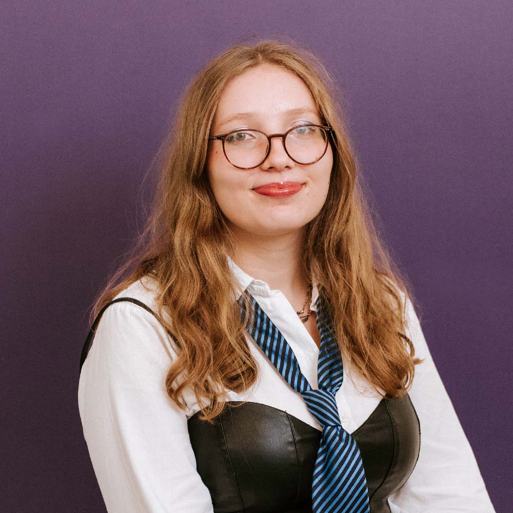 Wer sie kennt, weiß, dass ein „machste nix“ oder eine freche Antwort bei ihr zum Standardrepertoire gehören. Sie unterstützt das miraculum seit September 2025 als FSJlerin und bringt jede Menge Kreativität mit. Schon im Abitur saß sie im Kunstleistungskurs und tobt sich am liebsten mit Gouache und Tinte aus. Die Heißklebepistole läuft bei ihr in einer Frequenz, die man sonst nur von Serienmarathons kennt. Apropos: Sie schaut am liebsten immer wieder dieselben zwei Serien – auf Bewährtes kann man sich eben verlassen. Kulinarisch lebt sie zwischen Extremen: 99-prozentige Zartbitterschokolade auf der einen Seite und alles, was sauer ist, auf der anderen. Zitronen? Für sie „kaum bemerkbar“. Ihr Herz schlägt außerdem für Chili sin Carne und Pizzabaguette. Und wenn es ums Reisen geht kommt immer die Antwort: „Zu Malmö sag ich nie nö.“